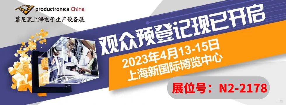 2023慕尼黑上海電子生產設備展將于2023年4月13-15日在上海新國際博覽中心舉辦。展會將匯聚國內外電子制造設備廠商,展品范圍涵蓋整個電子制造產業鏈,包括SMT表面貼裝技術、線束加工和連接器制造、系統級封裝、電子制造自動化、工業機器人、運動控制、點膠注膠、焊接、電子和化工材料、EMS電子制造服務、測試測量、PCB制造、電磁兼容、元器件制造(繞線機、沖壓、灌裝、涂敷、分選、打標等)和組裝工具等。琳瑯滿目的創新設備和制造科技,工業4.0和智慧工廠理念與實踐相結合,productronica China 幫助行業加速創新,帶您盡覽未來電子制造科技!