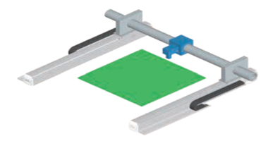 使用2支同動的X軸電動滑壼搭配一支Y軸電動滑壼組合成一套大型物品的搬運裝置,成本比6軸機械手臂節省許多。
