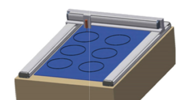 使用2支同動的X軸電動滑牽搭配一支Y軸滑牽組合成一套簡易式的玻璃板切割機構。