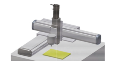 使用2支同動的X軸電動滑壼搭配一支Y軸滑毫在加上Z軸組合成一套高速的LCD玻璃基板的塗膠裝置。