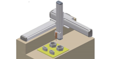 將3支單軸電動滑牽組合成X-Y-Z機構,可執行點塗膠作業,成本比一豪塗膠機械便宜很多,也可以運用在生產縷上的塗膠作業。