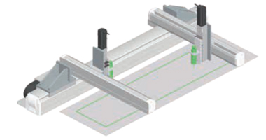 對大型液晶面板放置在電動滑臺上,搭配外部切刀機構,做裁切的動作。