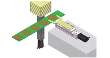 將PCB電路板放置在電動滑臺上,搭配外部切刀機構,做裁切的動作