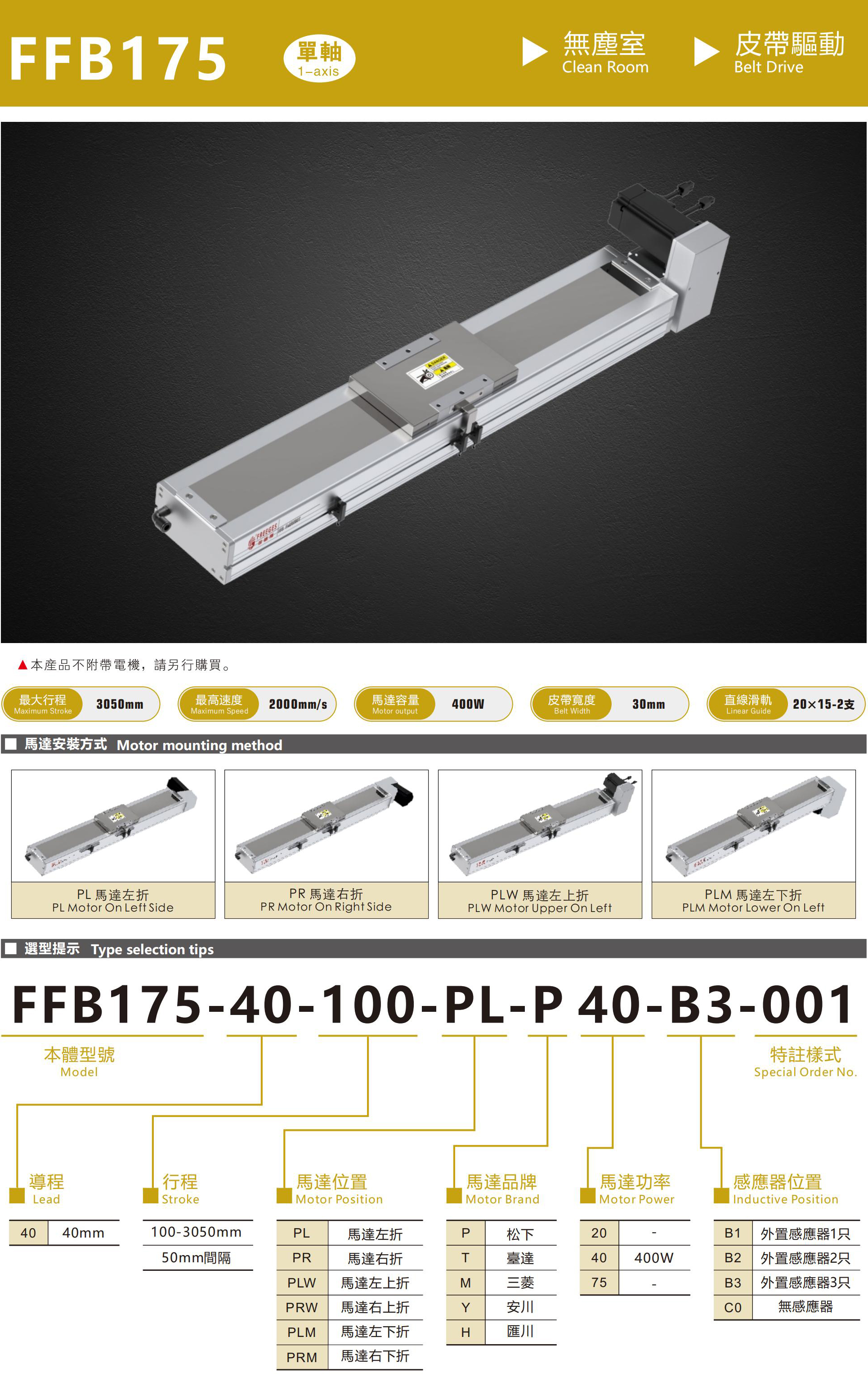 FFB175無塵皮帶模組、直線滑臺線性模組