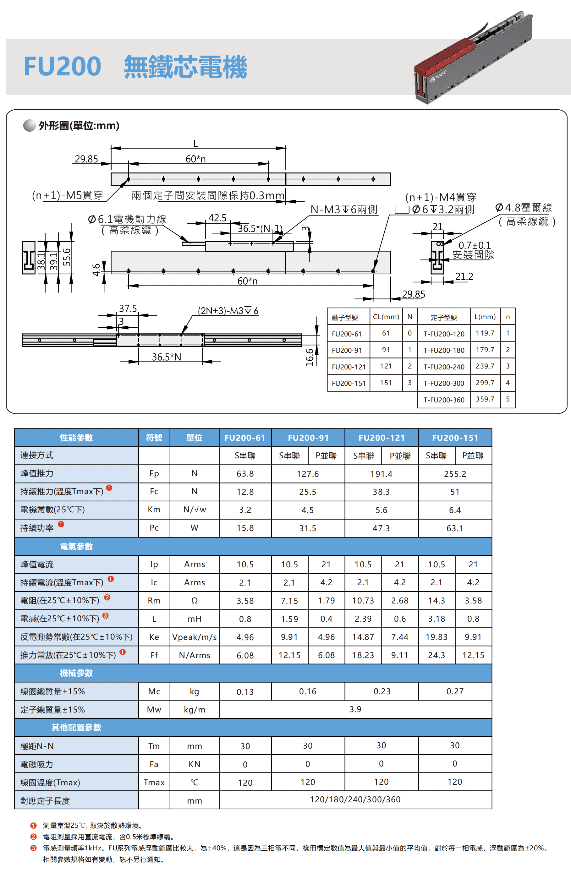 菲格斯FU無鐵芯直線電機系列采用無鐵芯技術,沒有繞阻插槽,線圈組件和磁路之前沒有任何的引力,絕對的零齒槽效應。這些特點特別適用于需要輕負載高加速、極低軸承摩擦力。