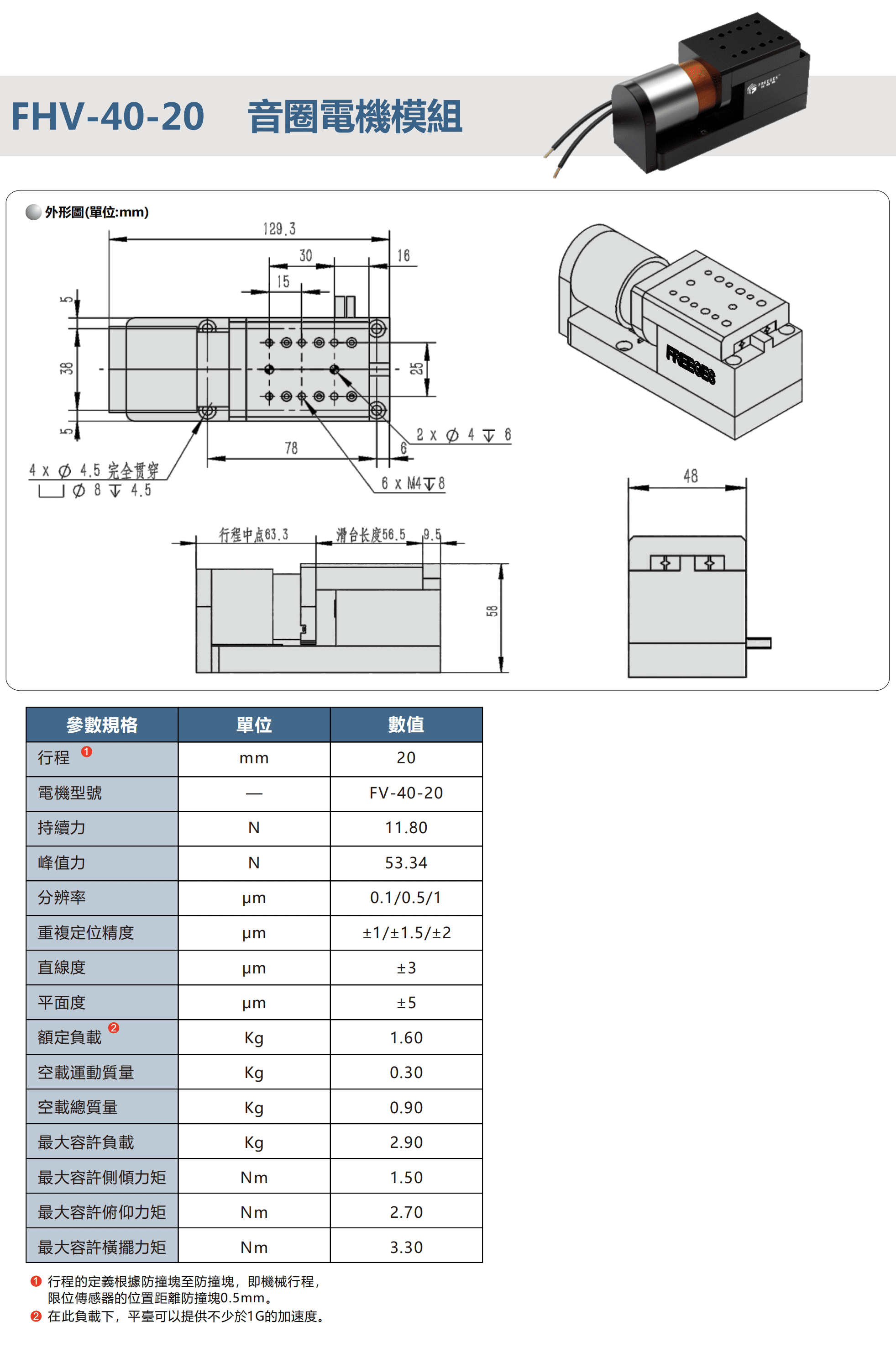 FHV-40-20音圈電機模組