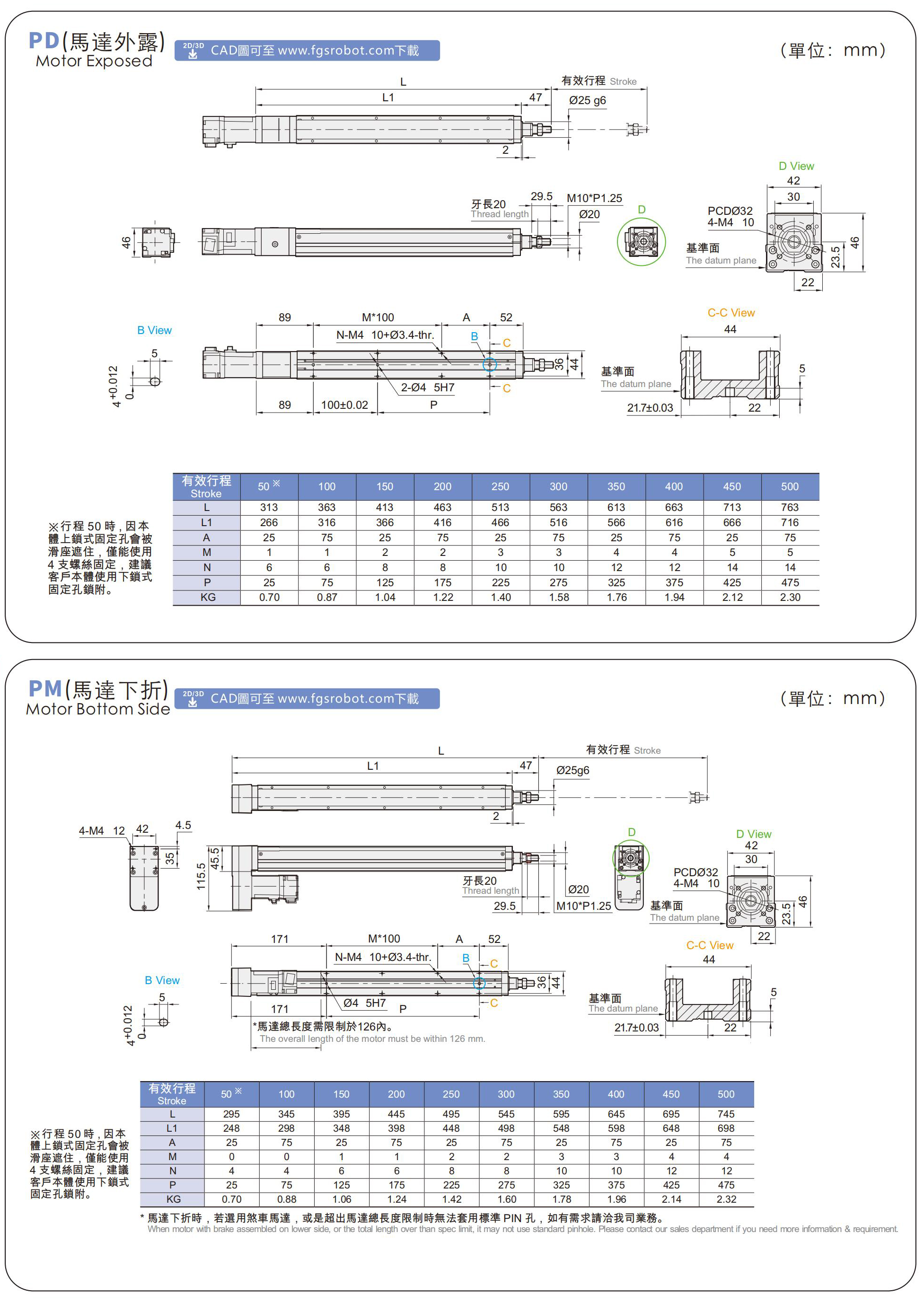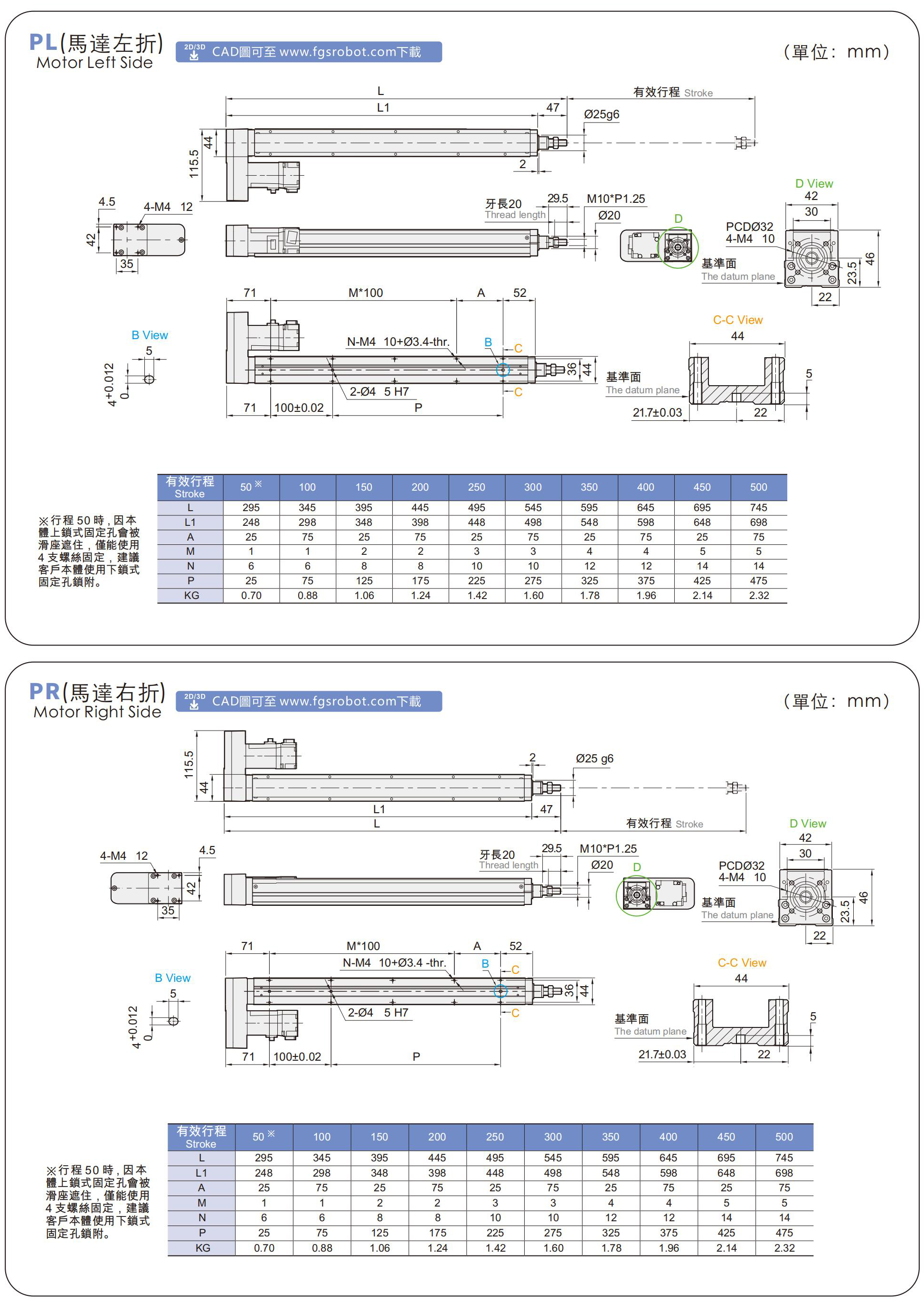 標準行程:50~500mm