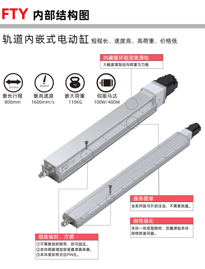 菲格斯伺服電動缸是將伺服電機與傳動絲杠一體化設計的模塊化產品,將伺服電機的旋轉運動通過絲桿-螺母傳動副轉換成直線運動,同時將伺服電機的特點:精確的轉速控制、精確的轉數控制和精確的扭矩控制轉變成:精確的速度控制、精確的位置挖制和精確的推力控制,是實現了高精度直線運動控制的全新革命性產品,并廣泛應用在航天航空試驗測試、多自由度模擬真、多自由度動感娛樂、多自由度精密加工、機器人、汽車制造設備、鋼鐵連鑄、石油化工、物料搬運、注塑機、模具按制、閥門控制、精密機床、制藥機械、食品工業等領域。安裝方式根據詳情圖進行確定。